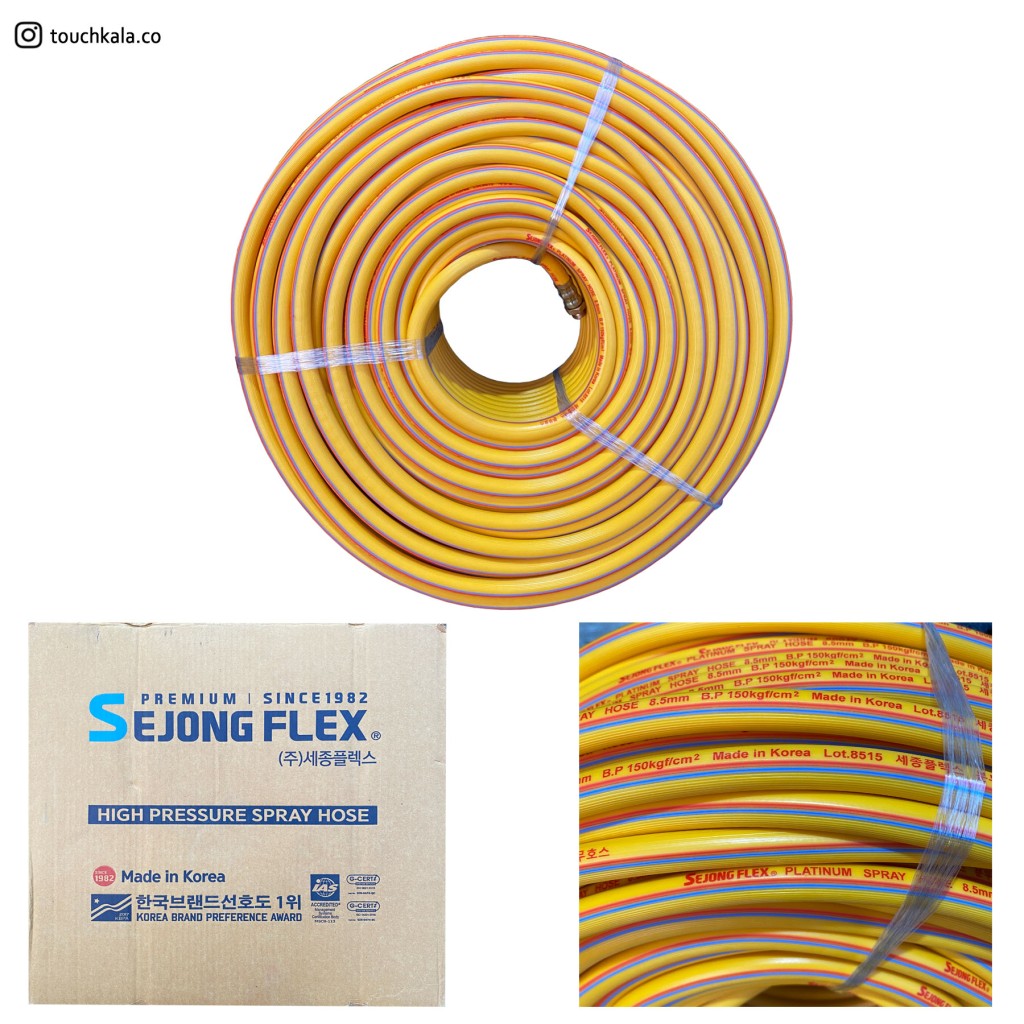 شیلنگ سمپاش 5 لایه sejong fleX کره 50 متری سایز 8.5 و ضخامت 5 لایه با تحمل فشار 150 بار ساخت کره جنوبی
