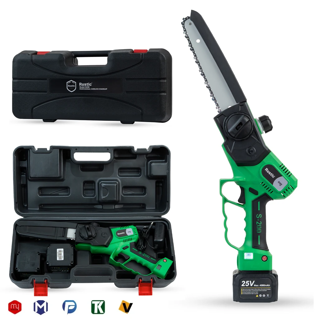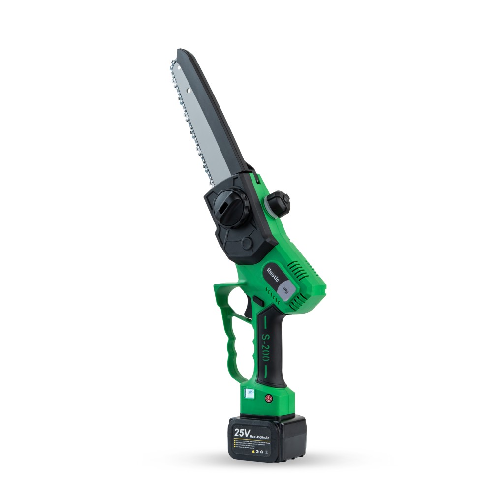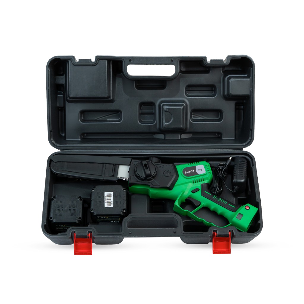 اره روستیک مدل Rustic S200 با باطری لیتیوم 25 ولت 4500 میلی امپر و قطر برش 200 میلیمتر، مناسب برای برش و هرس شاخه ها میباشد.